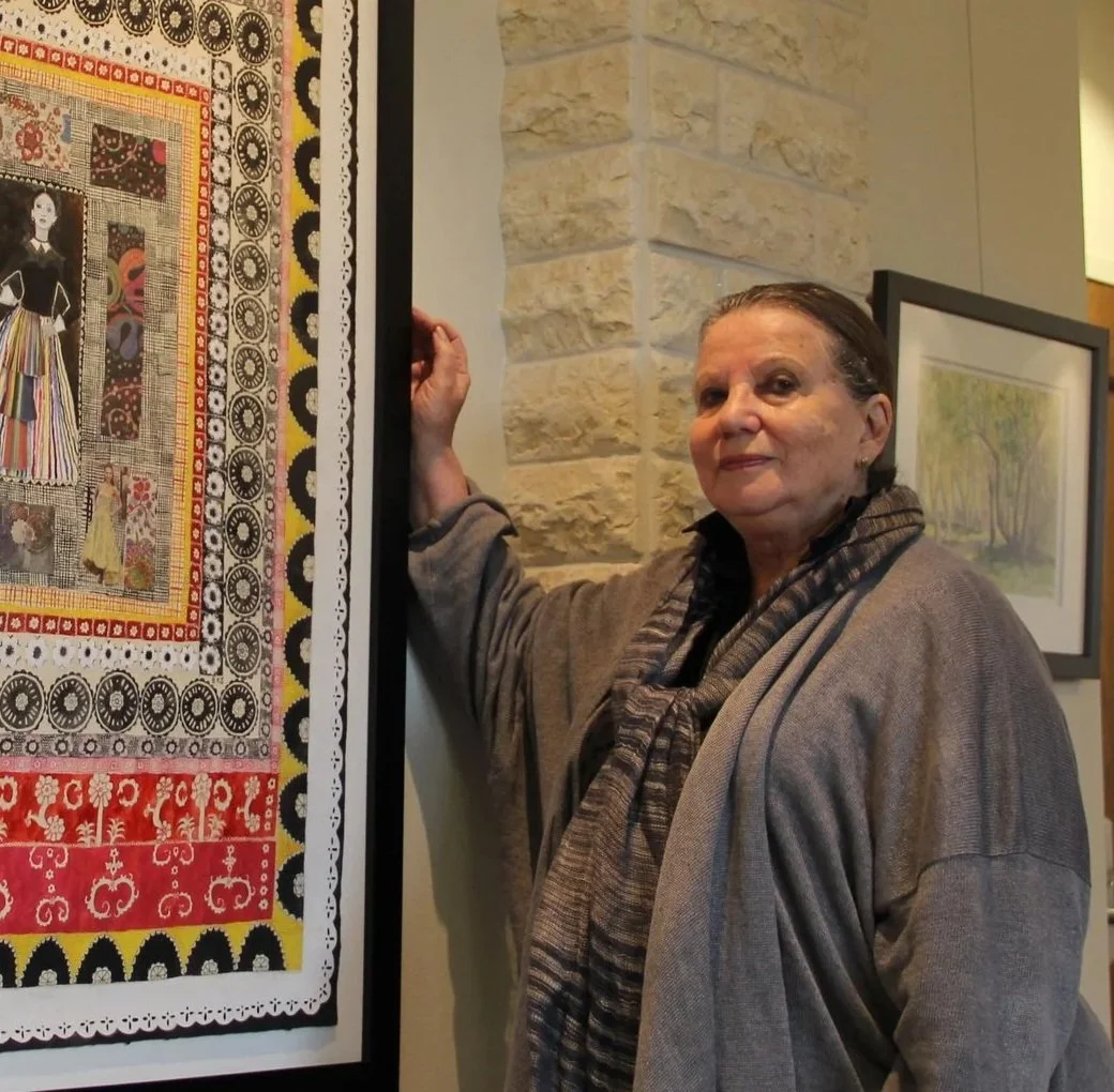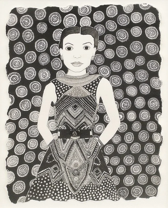 Barbara Kohl is a mixed-media artist whose work explores her identity as a Jewish woman. She places her subjects against ornate patterns inspired by historic textiles to symbolize the love and labor women have contributed to their communities. Through her depictions of brides from diverse heritages, Kohl celebrates both cultural legacy and continuity, honoring the lasting influence daughters and granddaughters will carry into the future.