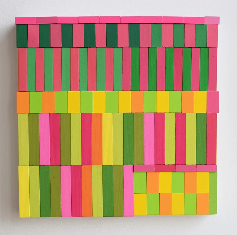 Caitlin Lempia-Bradford's artwork blends her passions for patterns, games, science fiction, and mathematics. While her work is grounded in play, it gravitates toward these systems because of the poetic potential found in structure, sequence, and repetition. Caitlin is fascinated by both the long and short cycles that emerge, as well as the unexpected anomalies that surface during the creation process. Her paintings embrace imperfection and chaos, highlighting irregularity and soft geometry.