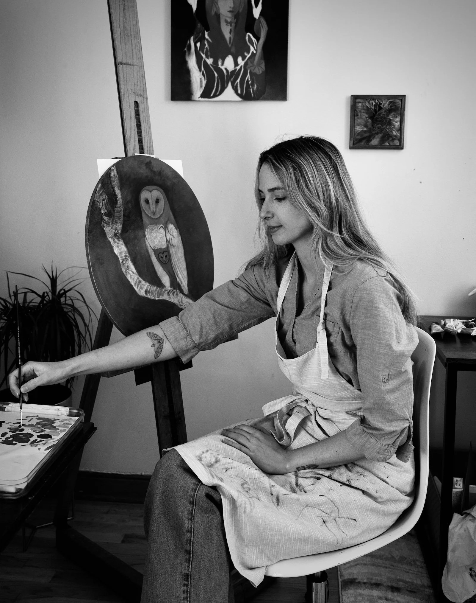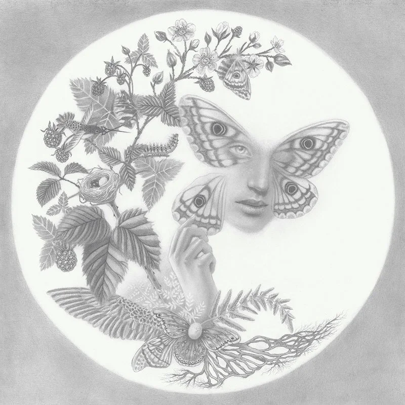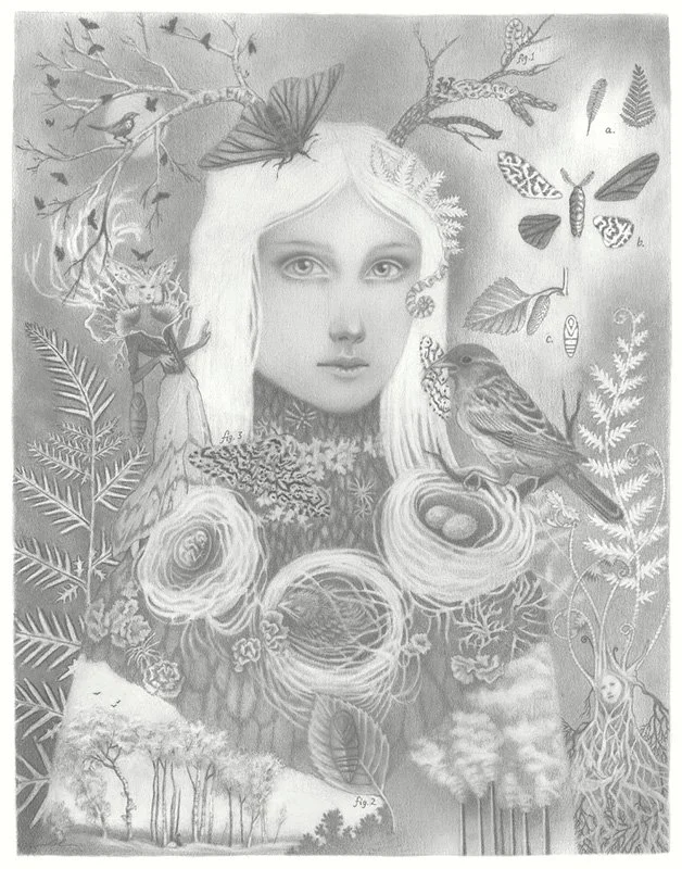 Brooke Leland is an artist whose paintings and drawings use natural forms to explore environmental, emotional, social, and spiritual themes. By merging human anatomy with organic motifs, she reflects on nature's life cycles and creates metaphors for the interconnected relationship between individuals and their ecosystems.