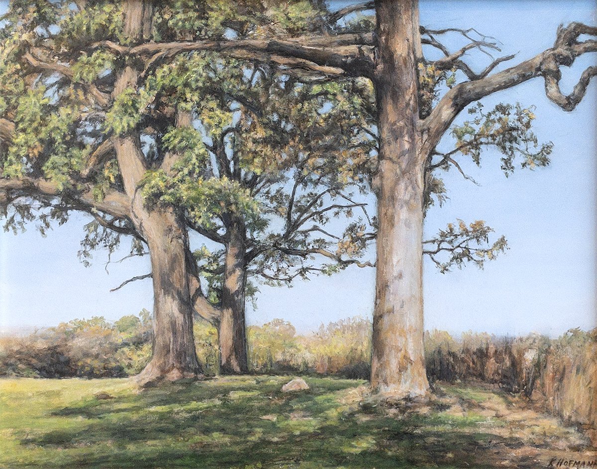 Inspired by the rural surroundings of her childhood, Kathy Hofmann paints with an intense focus and a lifelong passion for the family farmstead. While soaking in the atmospheric haze of the sunlit fields surrounding her, the artist feels the friendly and familiar gaze of cows following her every move.
